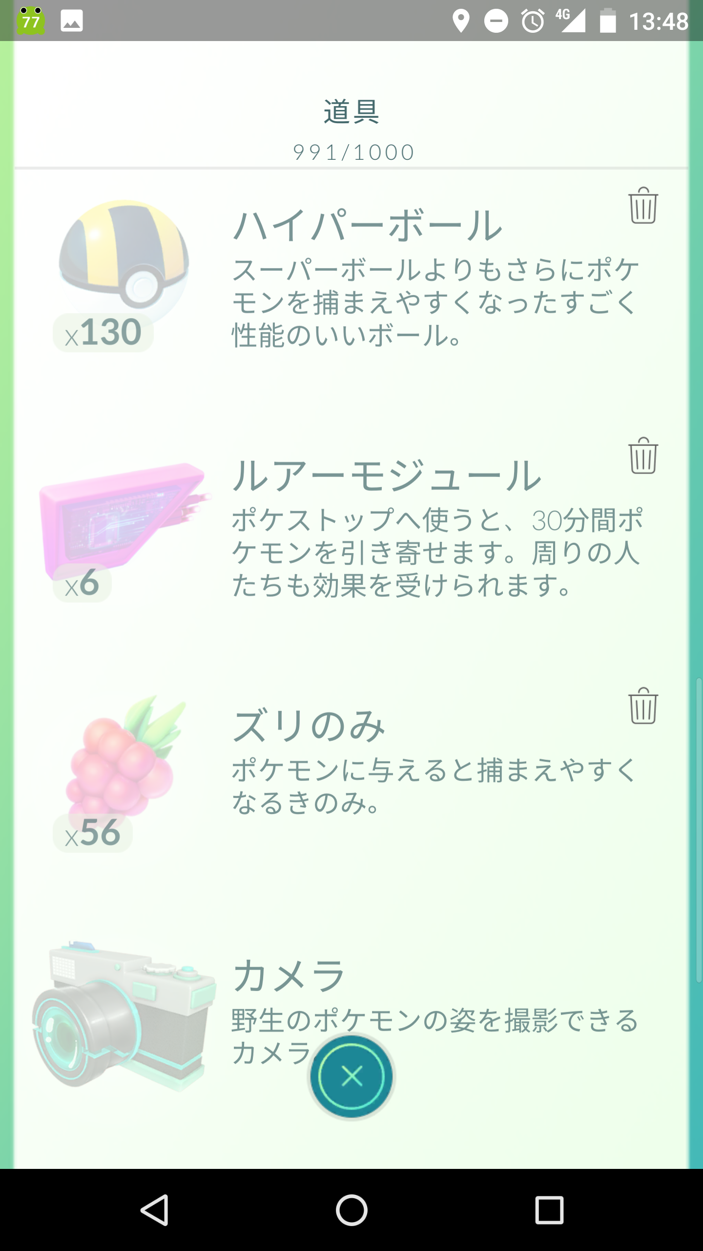 改めて、13時40分ほどの所持アイテムを!