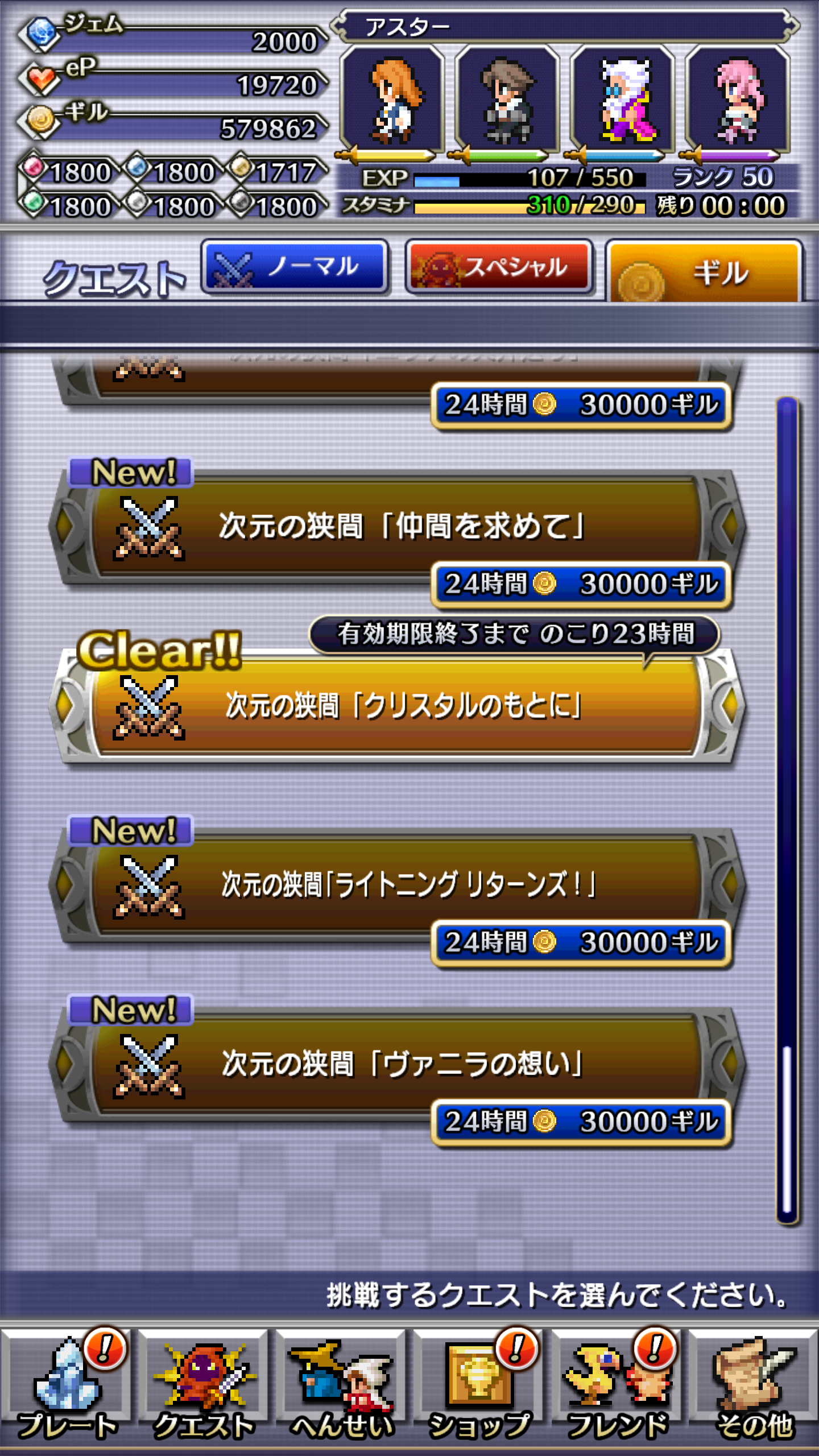 クエストは、フレンドのキャラが強いため、かなり助けられました。