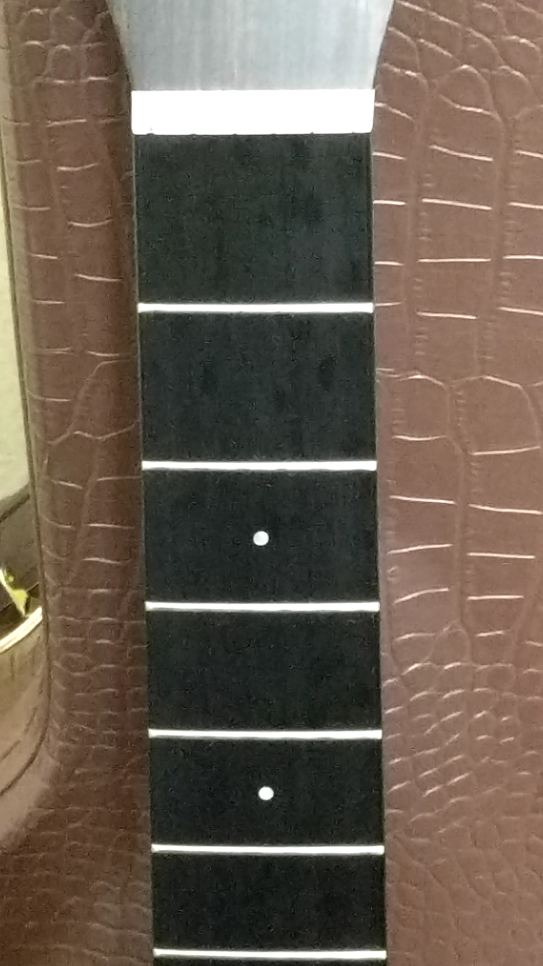 1・2フレットあたりの指板が、まだらっぽくなっておりますよね?